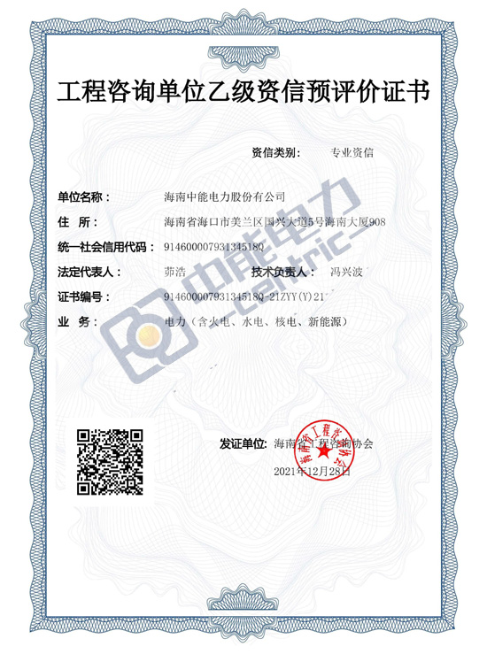 工程咨询单位乙级资信预评价证书